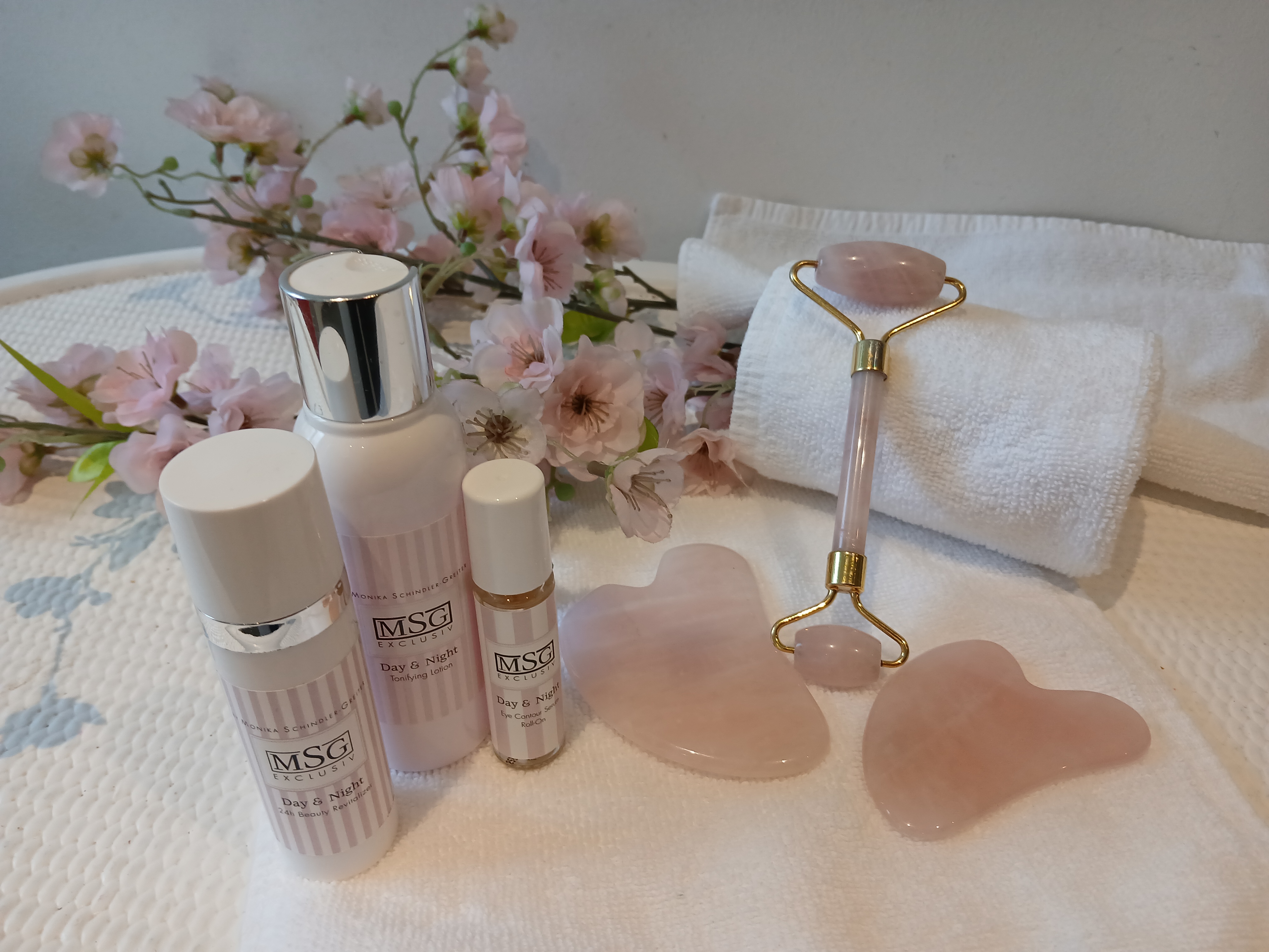 - Gesichts-, Hals- und Dekolletémassage mit Gua Sha Steinen und Roller