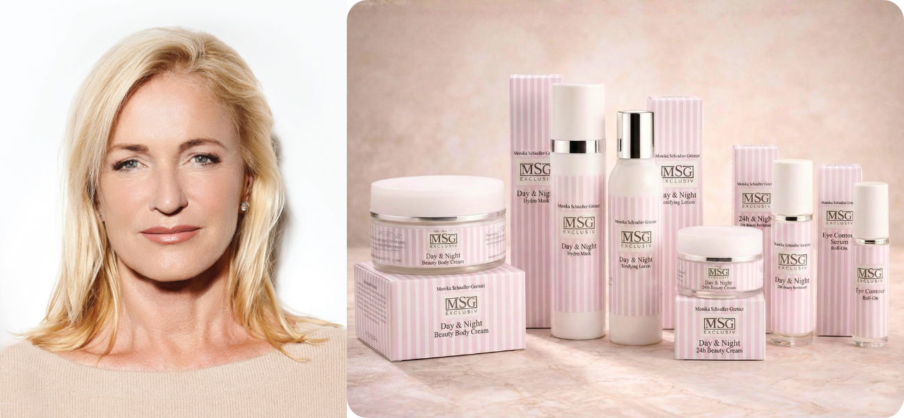 Diese wertvolle Tradition führte Monika Schindler-Greiter, die Tochter der Gründer, mit Leidenschaft weiter. Inspiriert vom Pioniergeist ihrer Eltern hat sie ihre eigene, hochwertige Kosmetikserie MSG geschaffen – bestehend aus Beautycreme, Gesichtsserum, Augenserum, Bodycreme, Tonicwasser und Maske.